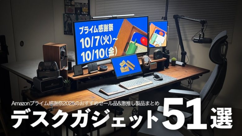 Amazonのプライム感謝祭セールの関連商品をベースに、2025年の上半期買って良かった、使って良かったガジェットやデスク周りの便利アクセサリーをまとめて紹介します!