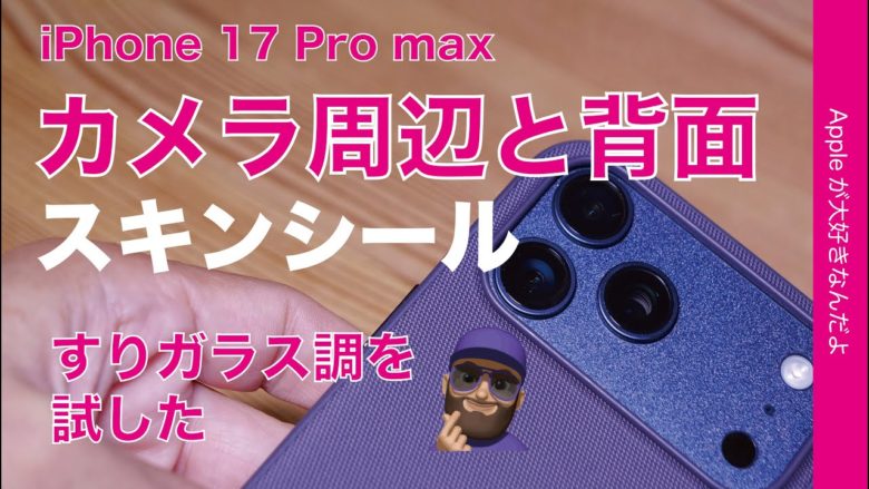 iPhone 17 ProとMaxはカメラの土台が大きいので傷が心配という声もあり、私自身も少し感じたので評判の良い会社のスキンシールを買ってみました。元の色を活かすりガラス調を試してみましたよ。