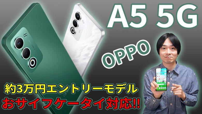 OPPOから約3万円で5Gとおサイフケータイ対応のエントリーモデルスマートフォン「A5 5G」が新発売‼