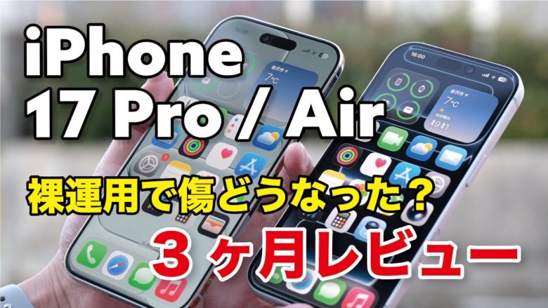 iPhone 17 Pro / Air を使って3ヶ月ほど経過しました。ケース、保護フィルムなしでどうなかったか恒例のレビューをしていきます。