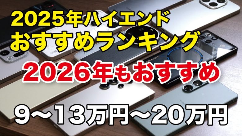 2026年に発売したハイエンドスマホ(Android)で2026年もおすすめのモデルを9〜13万円、13〜20万円でそれぞれTOP5で順位付けしました!ハイエンドは性能が高いので2026年、2027年以降も普通に使える端末が多くなっています。