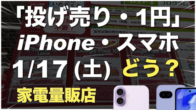 「1円」「投げ売り」iPhone・スマホ。2026年1月17日(土)