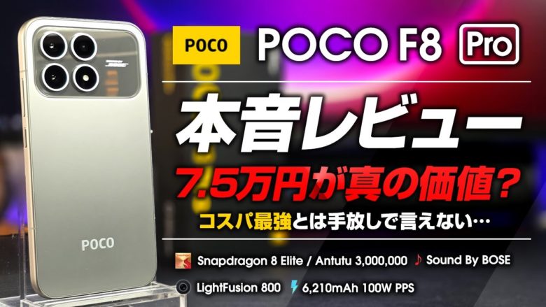 以外と評価が難しいハイコスパスマホ POCO F8 Proの本当の評価は本編をご覧あれ!!!